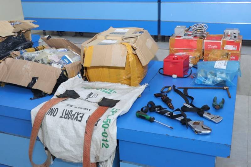 Penggeledahan di rumah dan gudang para pelaku menemukan lima dus spare part kapal siap kirim, tiga handphone, empat paket narkotika, senjata rakitan air gun, dua headgun, gerinda listrik, travolta, serta peralatan teknik lainnya.