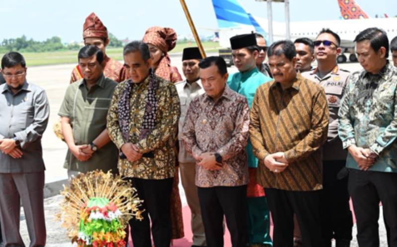 Kedatangan Ketua MPR RI tersebut disambut dengan penuh kehormatan oleh unsur Forum Komunikasi Pimpinan Daerah (Forkopimda) Provinsi Jambi, pejabat pemerintahan, serta tokoh masyarakat setempat. Kapolresta Jambi hadir sebagai bentuk dukungan dan pengamanan dalam rangkaian kunjungan kerja yang dilaksanakan oleh pimpinan lembaga tinggi negara tersebut.
